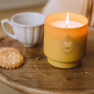 100% pflanzliches Wachs aus Mango, Soja und Kokosnuss・Reiner Baumwolldocht ohne Blei・Duft in Grasse entwickelt・Handgefertigter Schmuck mit Feingold vergoldet, verziert mit einem polierten Stein.